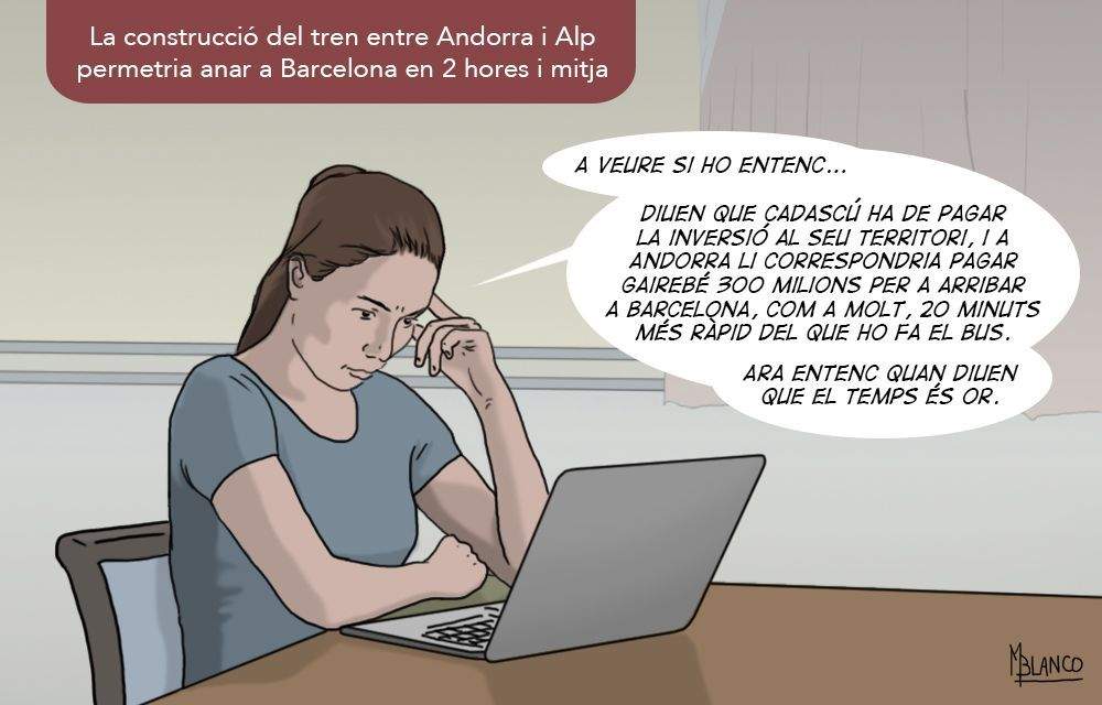 Aprofitant els nous estudis sobre transport ferroviari que permetria enllaçar Andorra i Barcelona, Martín Blanco afirma que el temps és or quan per estalviar uns 20 minuts al bus el cost pel Principat de fer el tren seria d’uns 300 milions.