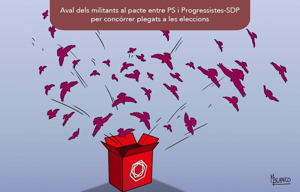 Els militants del PS i de Progressistes-SDP avalen el pacte electoral per concórrer a les properes eleccions generals. Mantindran sengles denominacions i seran presents a la nacional i a tantes territorials com puguin de forma coalitzada.