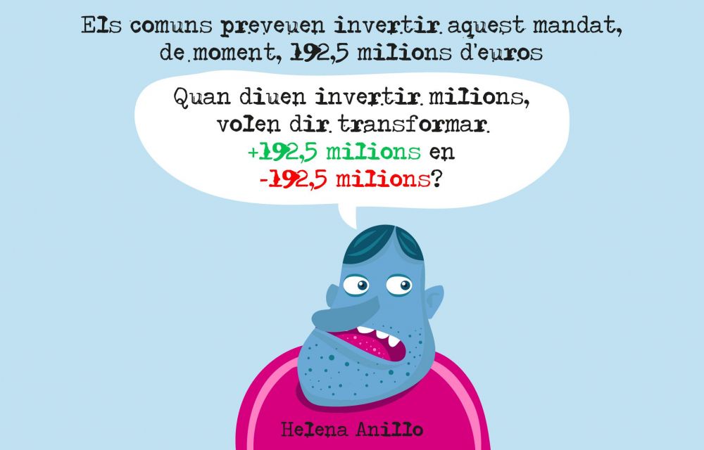 Els comuns preveuen invertir durant el mandat 2024-2027 192,5 milions d’euros i Helena Anillo veu com aquests diners que es preveuen tenir a la guardiola acabaran desapareixent, per tant, una qüestió de matemàtiques.