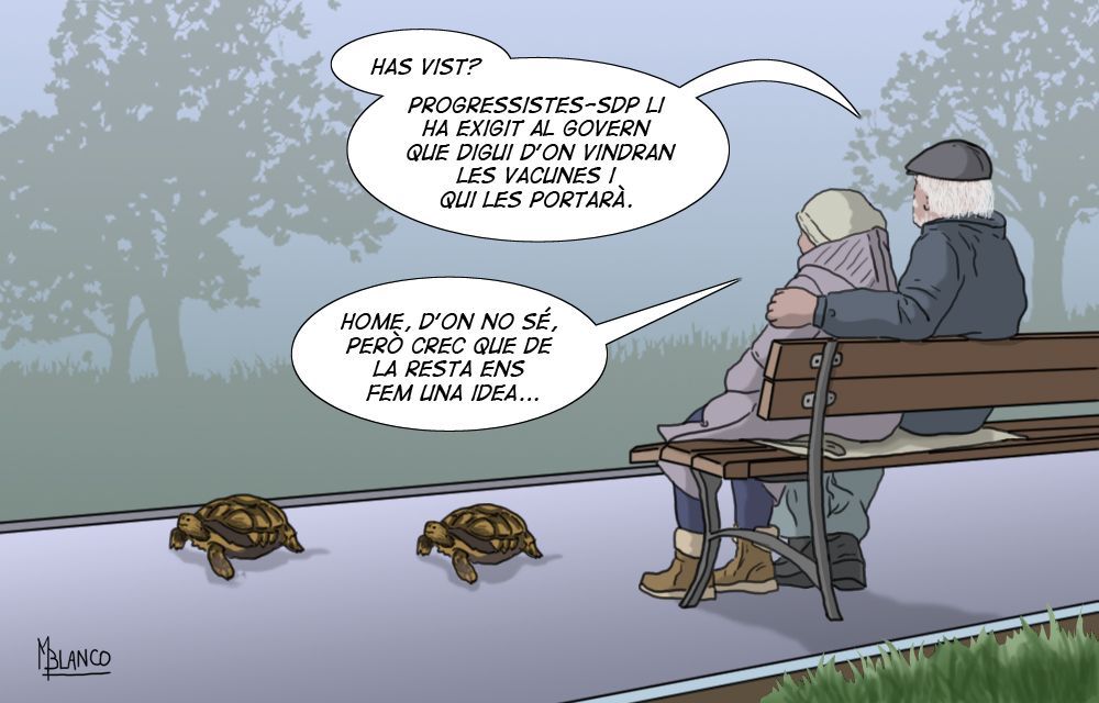 Martín Blanco aprofita la petició de transparència de Progressistes-SDP en relació amb la campanya de vacunació per pronosticar que potser les dosis de Pfizer que han d’arribar a Andorra via Madrid potser vindran transportades en tortugues.