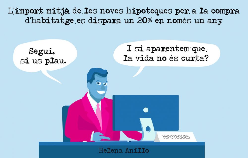 Davant l’augment desmesurat del preu de l’habitatge, Helena Anillo ironitza sobre com les hipoteques s’estan convertint en compromisos que superen l’esperança de vida.